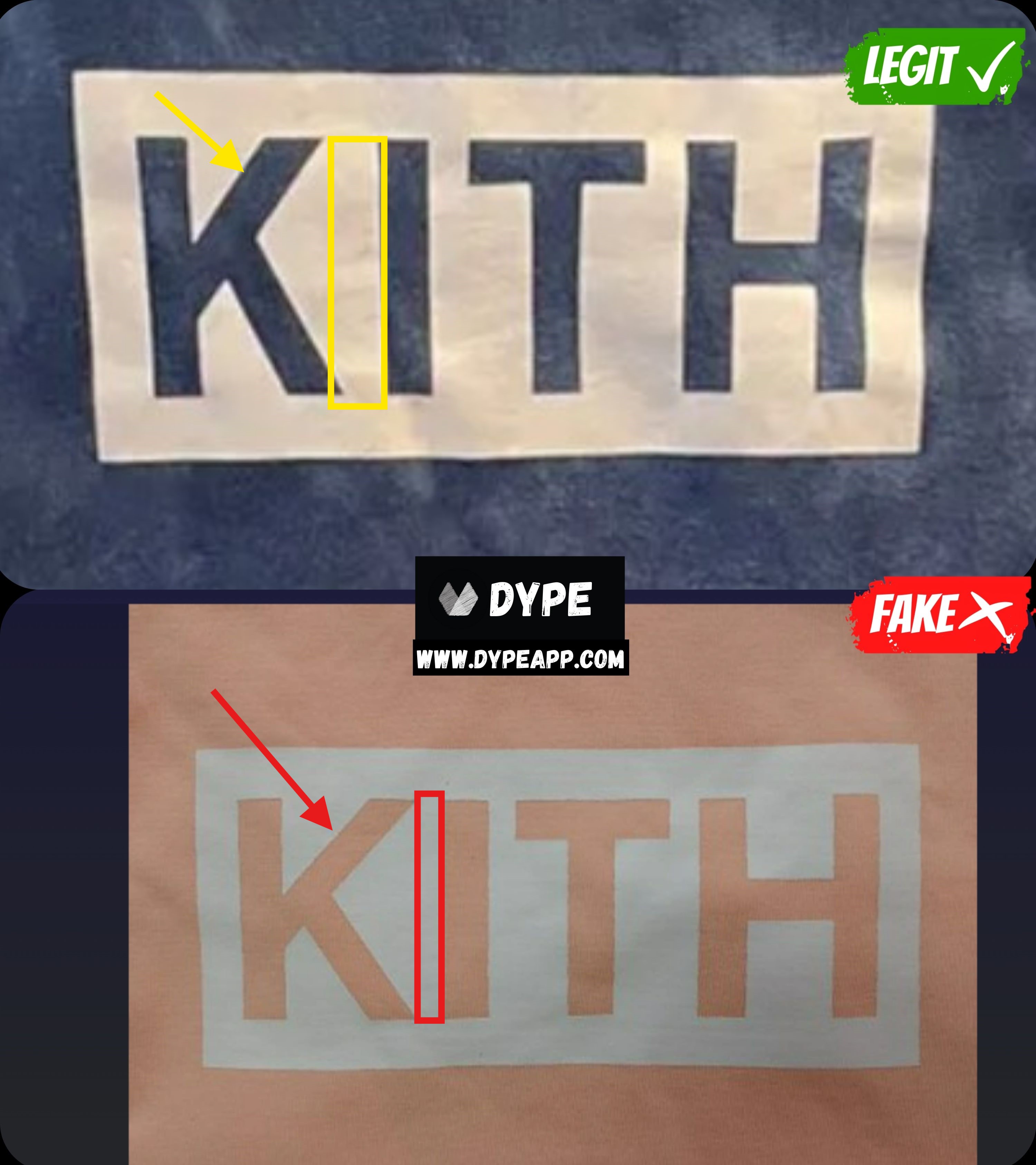 One common flaw to examine is the box logo print. On an authentic shirt, the spacing between the "K" and "I" is noticeably wider. In contrast, the replica has less space between these letters when compared side by side. Additionally, the letter "K" on the authentic shirt is more tilted, providing another key detail for authentication. These differences in spacing and font tilt are critical for distinguishing genuine Classic Kith Box Tees from their counterfeit counterparts, which often use a different font altogether.